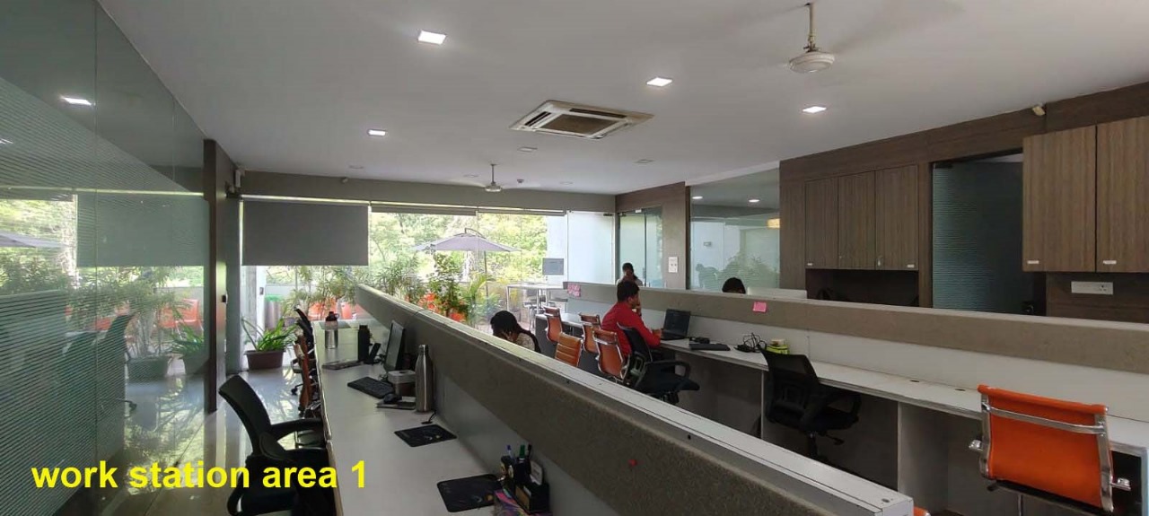 SETUP: FURNISHED WITH 40 WORKSTATIONS, 3 CABINS, 1 CONFERENCE ROOM, RECEPTION, HILL-FACING SIT-OUT VERANDA, SERVER ROOM, CASSETTE & SPLIT AC